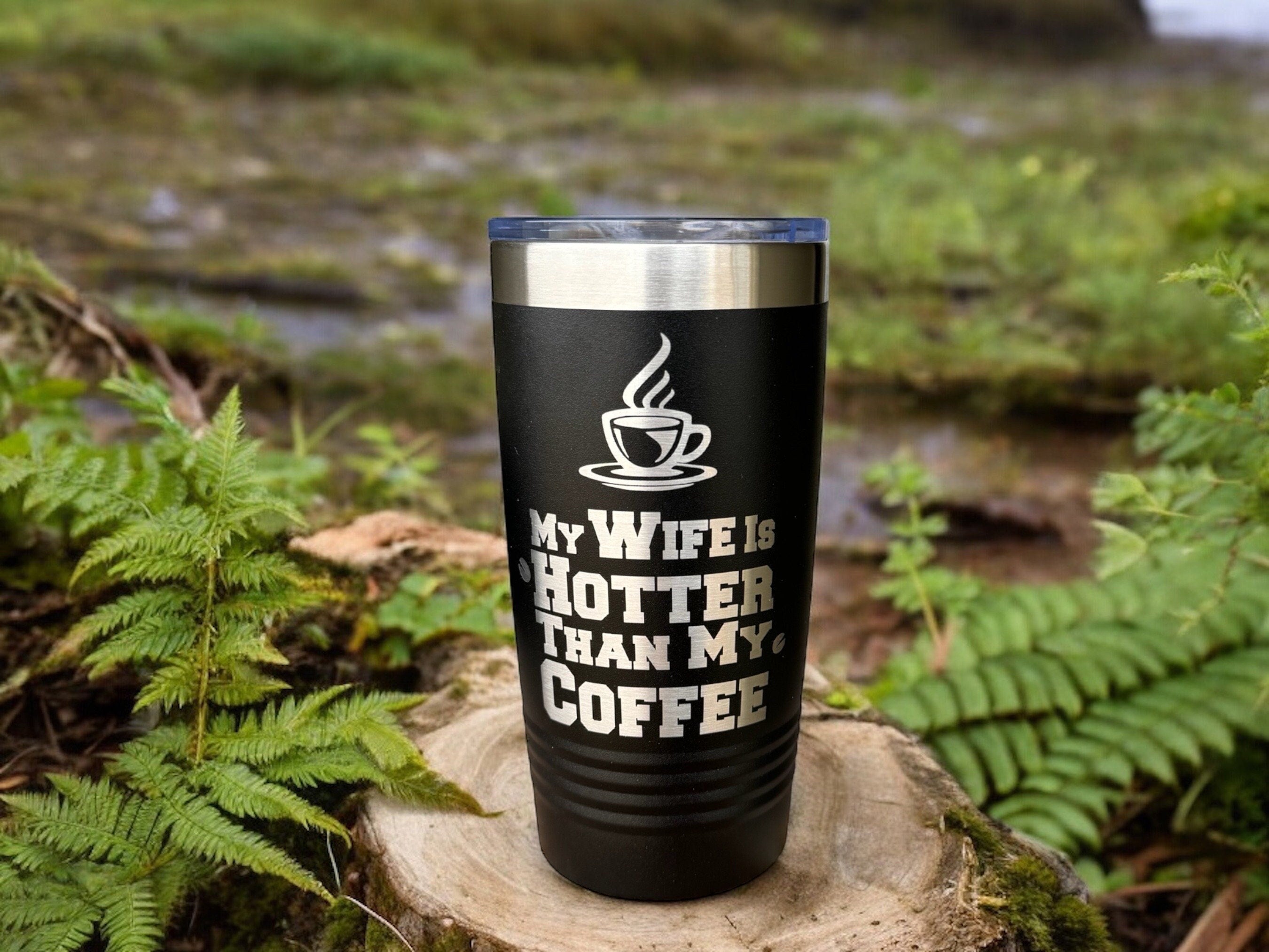 Funny Gift For Husband, My Wife Is Hotter Than My Coffee, 20oz Laser Engraved Tumbler, Funny Gift For Him