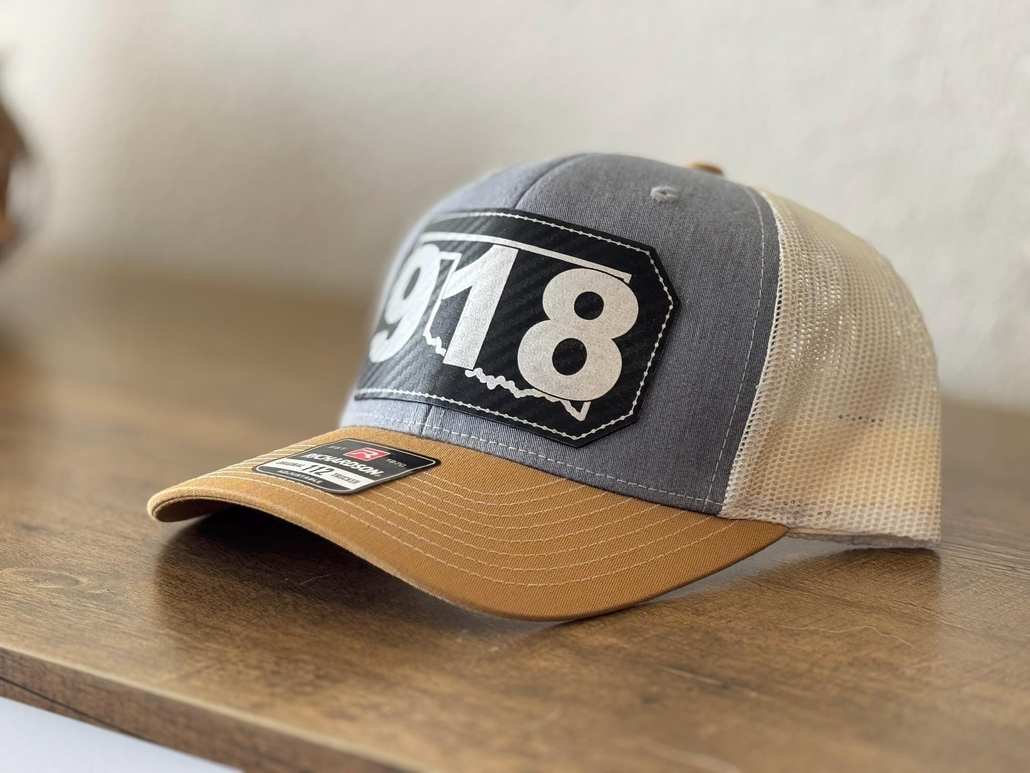 Represent Tulsa in style with this 918 Oklahoma Richardson 112 trucker hat! Featuring an engraved leatherette patch with the 918 area code and Oklahoma state outline, this cap is perfect for locals, gifts, and state pride.