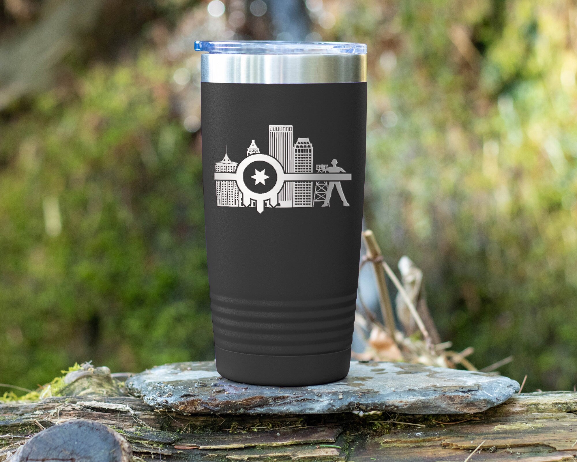Tulsa Flag Tumbler Engraved Tumbler with Tulsa Flag and Tulsa Skyline, Perfect gift to show of your love for Tulsa